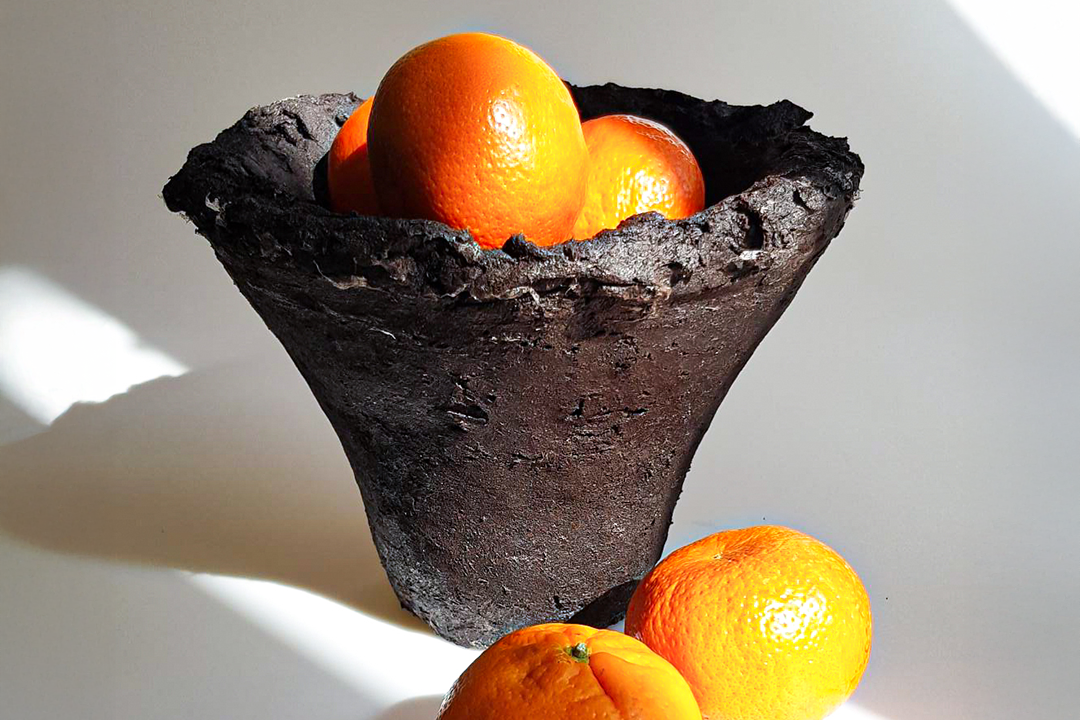 Other highlights include Gagandeep Heer’s coffee-ground biomaterials, Mobina Rajabimoghadam and Megan Morley’s experiments with eggshells and algae, a compostable wedding dress by Leah Gasson, and grass-knitted handbags embedded with seeds for renewal by Amelia Wylam, .
