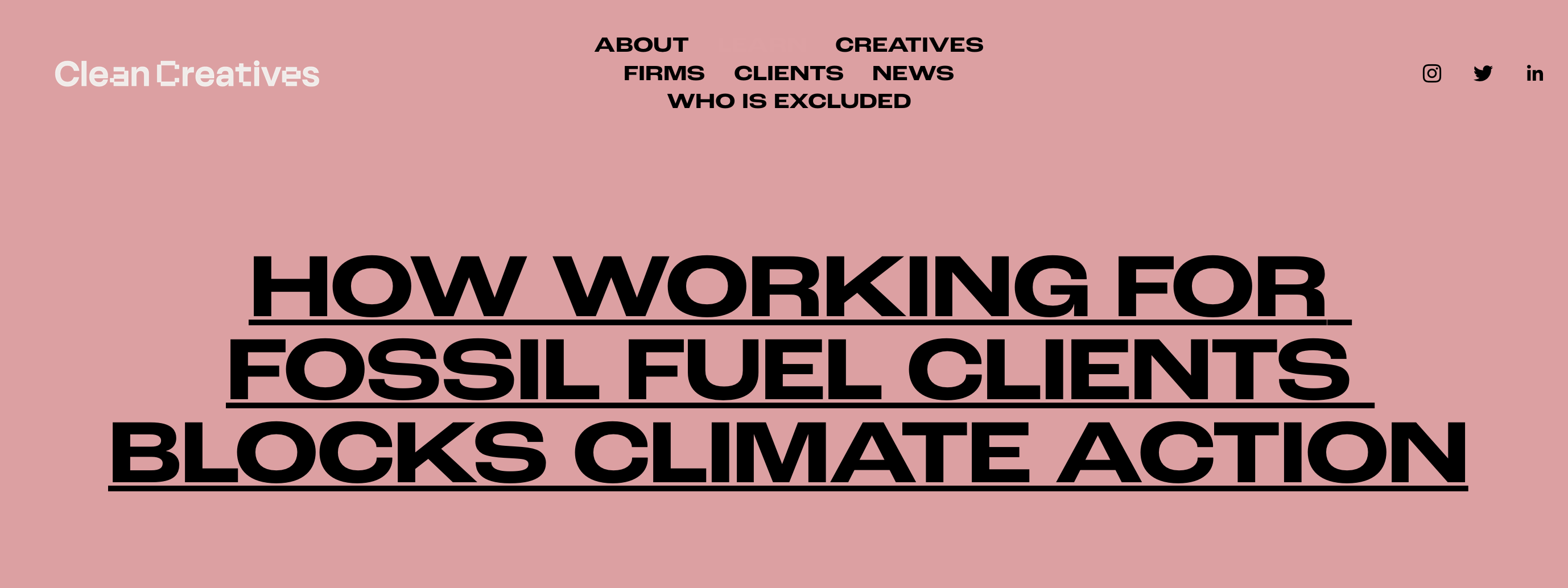 Mic’s piece is particularly relevant in the context of recent attempts by the ad industry to reduce the footprint of its productions: but those reductions may be dwarfed by the impact of its work for polluting clients. Campaign group Clean Creatives’ F-list names “90 Ad and PR Companies Working for the Fossil Fuel Industry”. “Major advertising and PR holding companies have announced sustainability policies aimed at reducing the carbon impact of their offices, travel, and production. Disclosed pledges from across the industry so far amount to reductions of less than 7 megatons of carbon per year - an amount that equals approximately one month of the carbon impact of a single fossil fuel client, Exxon, under their current business plans. Sustainability pledges by holding companies will fall short in addressing climate change and questions of employee engagement as long as they do not clearly rule out working with the most polluting clients,” the group says. See the full report here