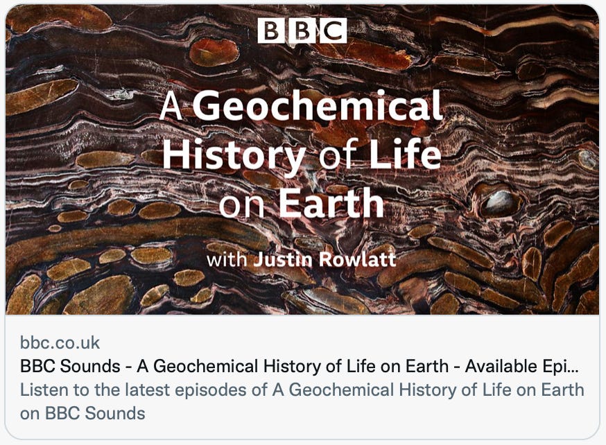 While we are currently “conducting a giant chemistry experiment with Earth’s atmosphere and oceans”, this BBC radio series, A Geochemical History of Life on Earth, provides fascinating background on the story of how our planet was made. Available on the BBC Sounds app